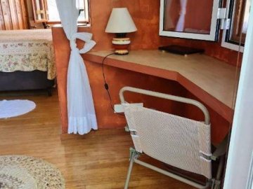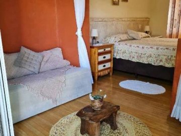 Suíte com cama de casal e sala de leitura, com ar condicionado e armários embutidos;