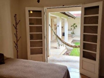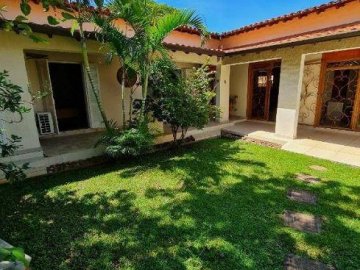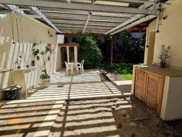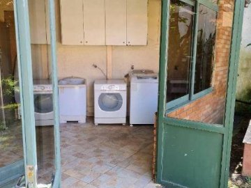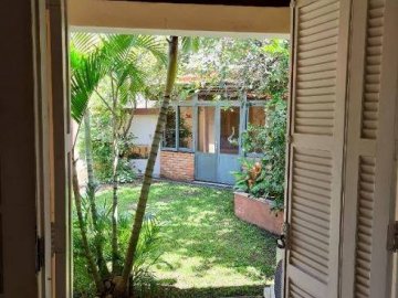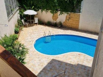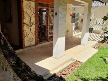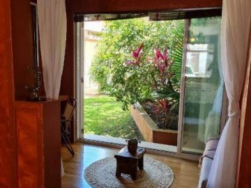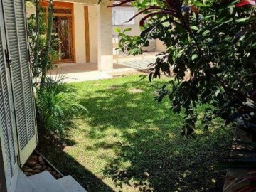 Quintal com gramado, pés de romã, limão, jabuticaba e ipê; área de convívio com cobertura retrátil;