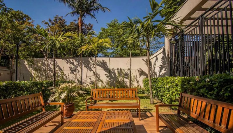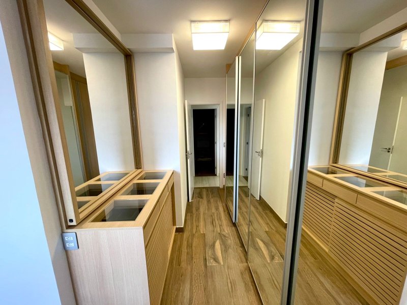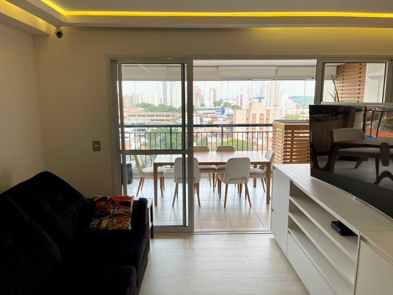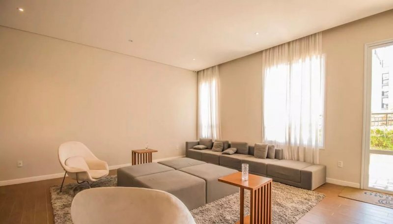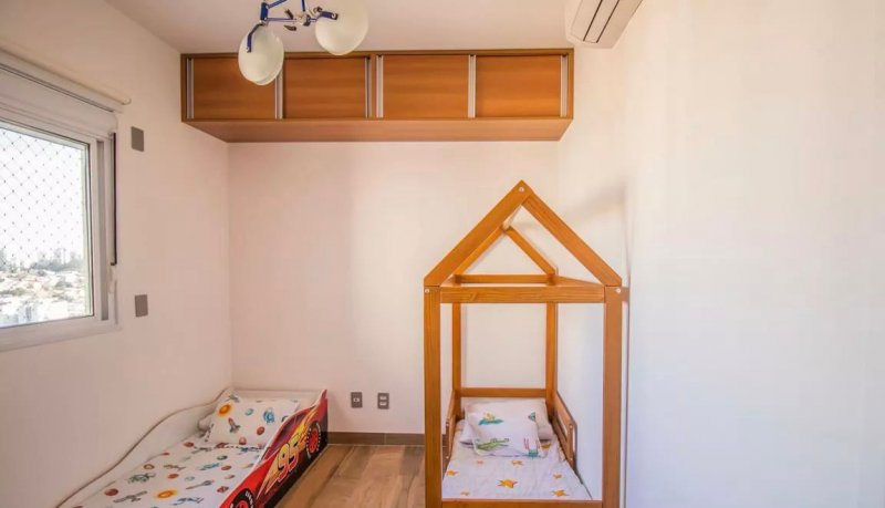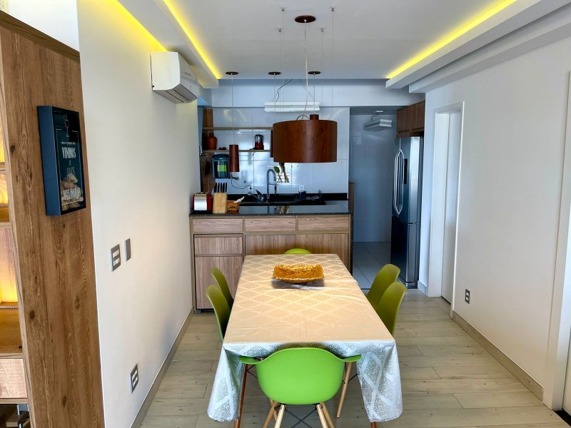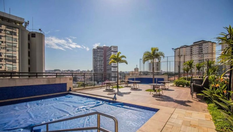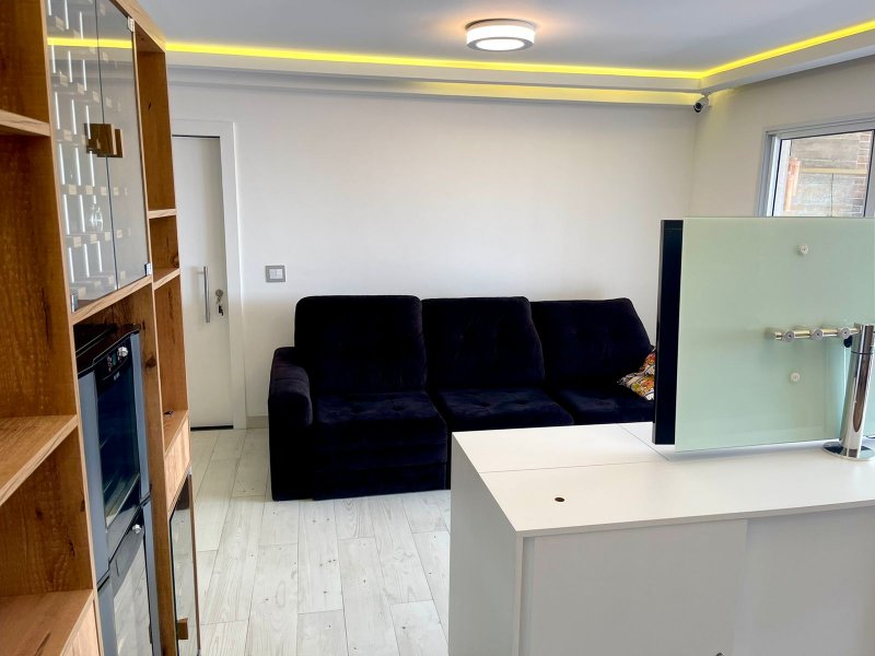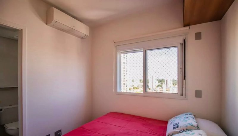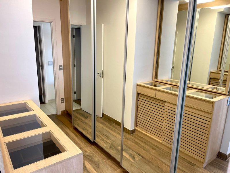 Box, Varanda, Armários embutidos no quarto, Armários nos banheiros, Armários na cozinha, Ar condicionado, Chuveiro a gás, Geladeira inclusa, Cozinha americana, Área de serviço