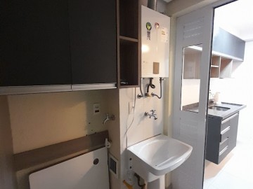 ÁREA ÚTIL 61m2 COM 02 DORMITÓRIOS (01 SUÍTE), BANHEIRO SOCIAL, SALA PARA 02 AMBIENTES, VARANDA, COZINHA AMERICANA, ÁREA DE SERVIÇO E 02 VAGAS.