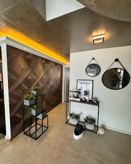 Com 03 dormitórios (sendo 01 suíte master com closet), banheiro social, sala de estar, sala de jantar, lavabo, escritório, cozinha gourmet, lavanderia, jardim e 02 vagas de garagem.