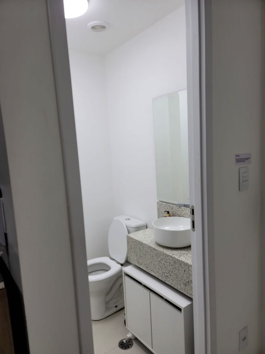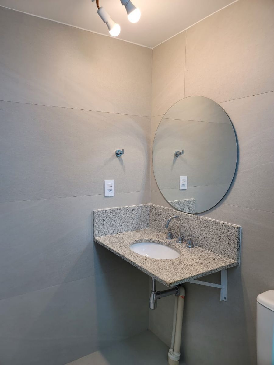 Banheiro social e lavabo, com acabamentos modernos
