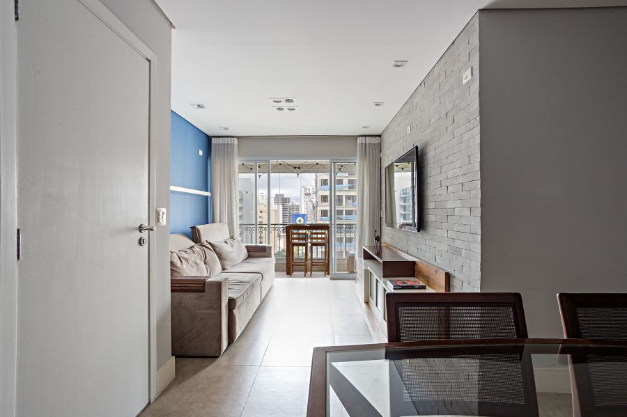 Com uma área total de 100 m², o imóvel possui uma planta inteligente e bem distribuída. A unidade conta com três dormitórios, sendo uma suíte, sala de estar ampla, lavabo e duas vagas de garagem. O apartamento é comercializado totalmente mobiliado, o que representa um diferencial competitivo imediato, reduzindo custos de implantação para o comprador e acelerando o potencial de ocupação ou revenda.