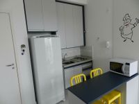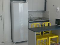 Studio com uma suíte pronto para morar. Completo, piso de porcelanato, novo e com fogão, geladeira, micro-ondas, cama, sofá e aquecedor.
