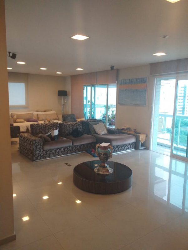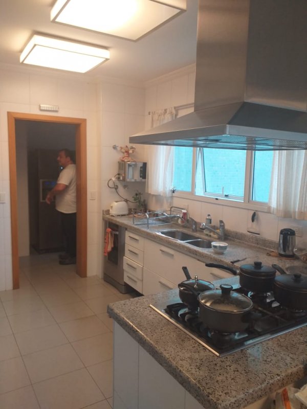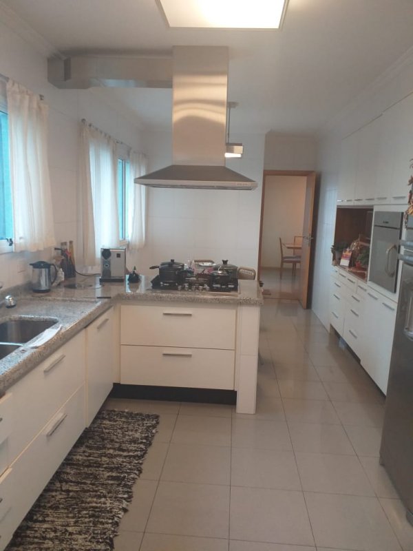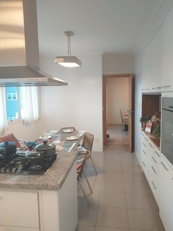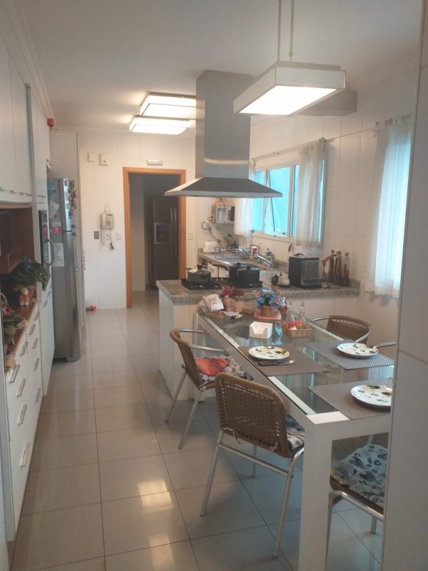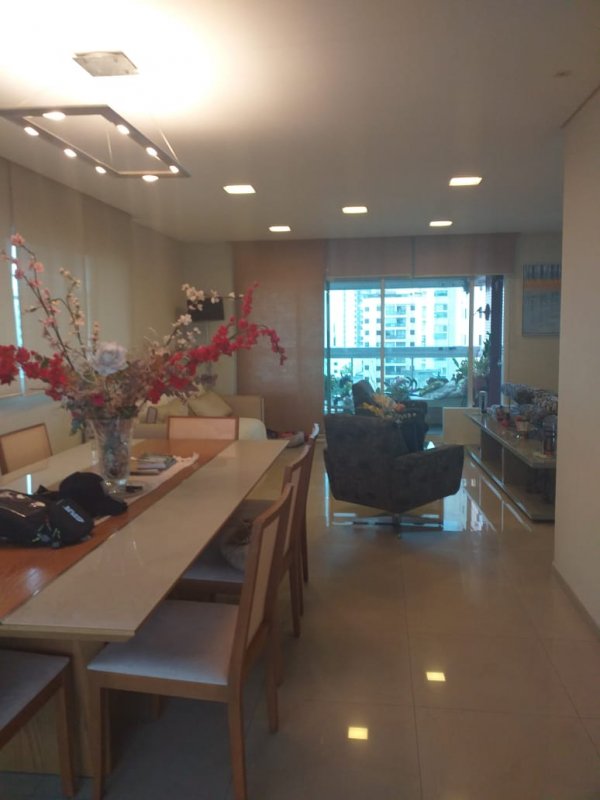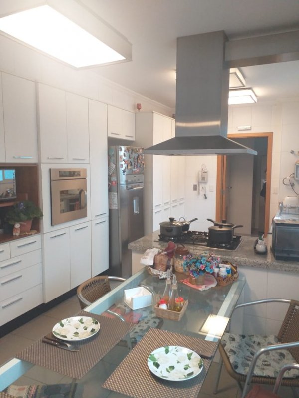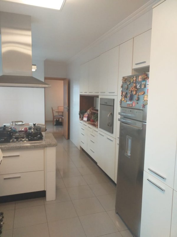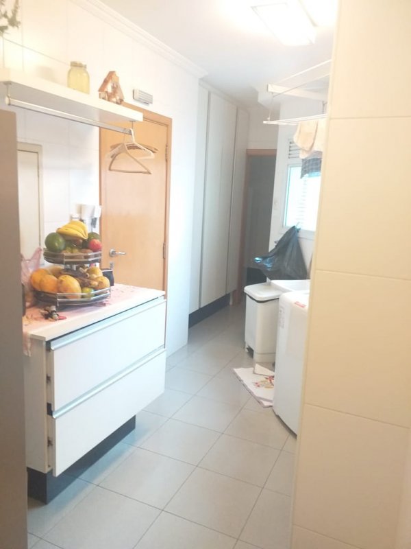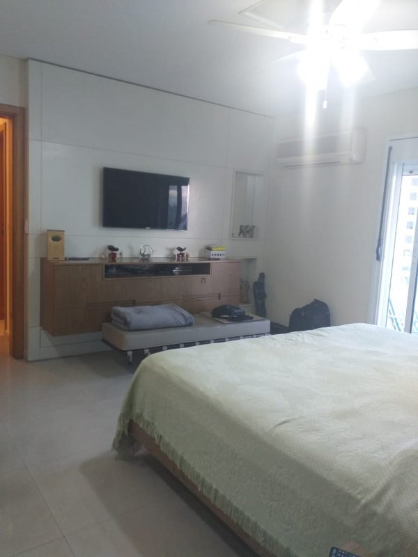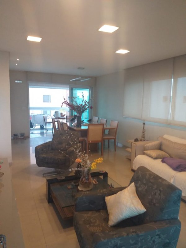 Belíssimo apartamento, com Varanda Gourmet toda envidraçada e churrasqueira, 4 suítes, sendo uma suíte master e banheiros Sr. e Sra, sala ampla para três ambientes, copa / cozinha arejada e com iluminação natural, área de serviço, dormitório e banheiro de empregada. Apartamento com excelente distribuição: Possui 4 suítes, sala com 2 sacadas e 3 ambientes amplos, 1 lavabo, copa / cozinha ampla repleta de armários planejados, área de serviço com armários, dependência de empregada (despensa com armários), banheiro de empregada e 5 vagas na garagem mais deposito privativo. Torre única com 21 andares, sendo 1 apartamento por andar. Lazer: playground, piscina, sauna, academia, salão de festas.