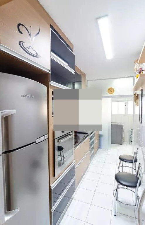 Apartamento possui armários planejados na cozinha, suíte e prateleiras no quarto reversível que pode ser usado como dormitório e/ou escritório. A cozinha possui geladeira, fogão cooktop e forno embutidos. Já na sala, ficará sofá retrátil de três lugares. No quarto de casal armários embutidos e cama box baú. No segundo quarto, ficará um guarda-roupas. Todos os itens são negociáveis para retirada.