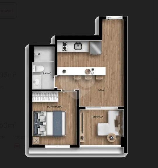 - 1 Dormitório(s) - 1 Banheiro(s) - 1 Sala(s)
